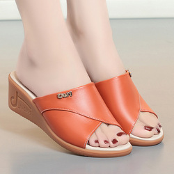 Xuanhui Talla 43 Sandalias de cuña de suela blanda de verano de lujo Zapatilla de cuero genuino para mujer