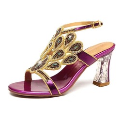 Xuanhui luxe nouvelle mode élégant haute qualité tendance fête de mariage strass 7.5cm bloc sandales à talons hauts pour les femmes