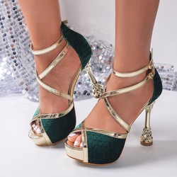 Xuanhui ग्रीष्मकालीन नए फैशन ओपन टो लक्जरी क्रॉस स्ट्रैप महिलाओं के लिए 11 सेमी पार्टी हील्स