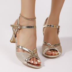 Xuanhi थोक 2025 नए आगमन ग्रीष्मकालीन सोने के लिए 6 सेमी हाई एड़ी सैंडल