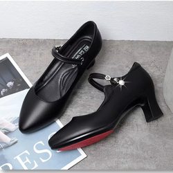Xuanhui Summer Plus Size High Quality Point Square High Heeled Sandals for Wedding Party Mary Jane Single Shoes