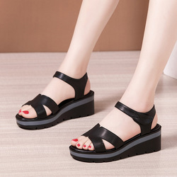 Xuanhui Size 43 Luxury Summer Soft Sole Wedge Sandals Genuine Leather Slipper for Women