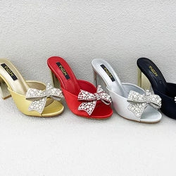 Xuanhui nuovo stile Open Toe Bowknot tacco alto pantofole per festa di nozze duro con tacco alto