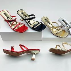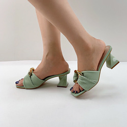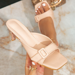 Xuanhui 2025 estate nuovo stile moda quadrato Open Toe Slide in metallo con fibbia da donna tacco alto