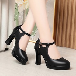 Xuanhui 여름 플러스 사이즈 하이 퀄리티 포인트 스퀘어 하이힐 샌들 웨딩 파티 메리 제인 싱글 슈즈