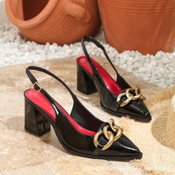 Xuanhui Luxe Sexy Puntige Neus Hoge Hakken Feestschoenen Dames Metalen Ketting Slingback Pump Hakken Voor Vrouwen