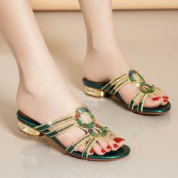 Xuanhui Coreano Moda Verão Novo Estilo Confortável Ponto Toe Rhinestone Shaped Heel 6.5cm Chinelos de Salto Alto e Sandálias
