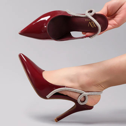 Xuanhui Grande Tamanho Moda Metal Point Toe High Heel Slingback Bombas Saltos para Senhoras Elegantes
